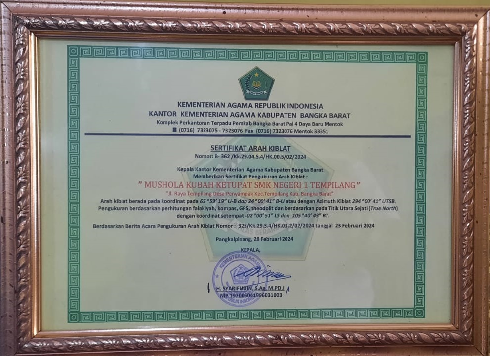 SMK berawal dari kebun karet yang dimiliki dari Pak Jurnain, Pak Sukandi (selaku Kadus pada saat itu) Pak Budin adik dari Jurnain dan Pak Sur Saudara Pak Jurnain dari pernyataan dari Pak Hermawan. Drs Rozali Kepala Dinas Pendidikan pemuda dan olahraga, dengan dukungan dari Pak Sukandi selaku Pak Kadus saat itu sedangkan Pak Kades Alani S.E dengan dukungan masyarakat sekitar Sangku dan penyampak maka diletakkan peletakan batu pertama yang saat ini posisi di mushola Kubah Ketupat SMK Negeri 1 Tempilang dalam pelelaksana peletakan batu pertama dihadiri Pak Drs Rozali selaku Kepala Dinas Pendidikan Pemuda dan Olahraga pada saat itu bersama Kepala Sekolah SMK Negeri 1 Tempilang Bapak Alzam S.Pd. Wilayah Tempilang masih bergabung dengan wilayah kelapa sehingga dulunya juga SMP Negeri 1 Tempilang adalah SMP Negeri 2 Kelapa, bedasarkan Perda Peraturan Daerah Kabupaten Bangka Nomor 7 Tahun 2001 Tentang Pembentukan 9 (Sembilan) Kecamatan. 26 April 2001, ttd Bupati Bangka bernama Eko Maulana Ali. Berdasarkan surat ini tempilang menjadi kecamatan tersendiri dengan wilayah desa 9 Desa yaitu : 1. Desa Tempilang; . Desa Penyampak; 3. Desa Sangku; 4. Desa Tanjung Niur; 5. Desa Buyan Kelumbi; 6. Desa Benteng Kota; 7. Desa Air Lintang; 8. Desa Sinar Surya; 9. Desa Simpang Yul.